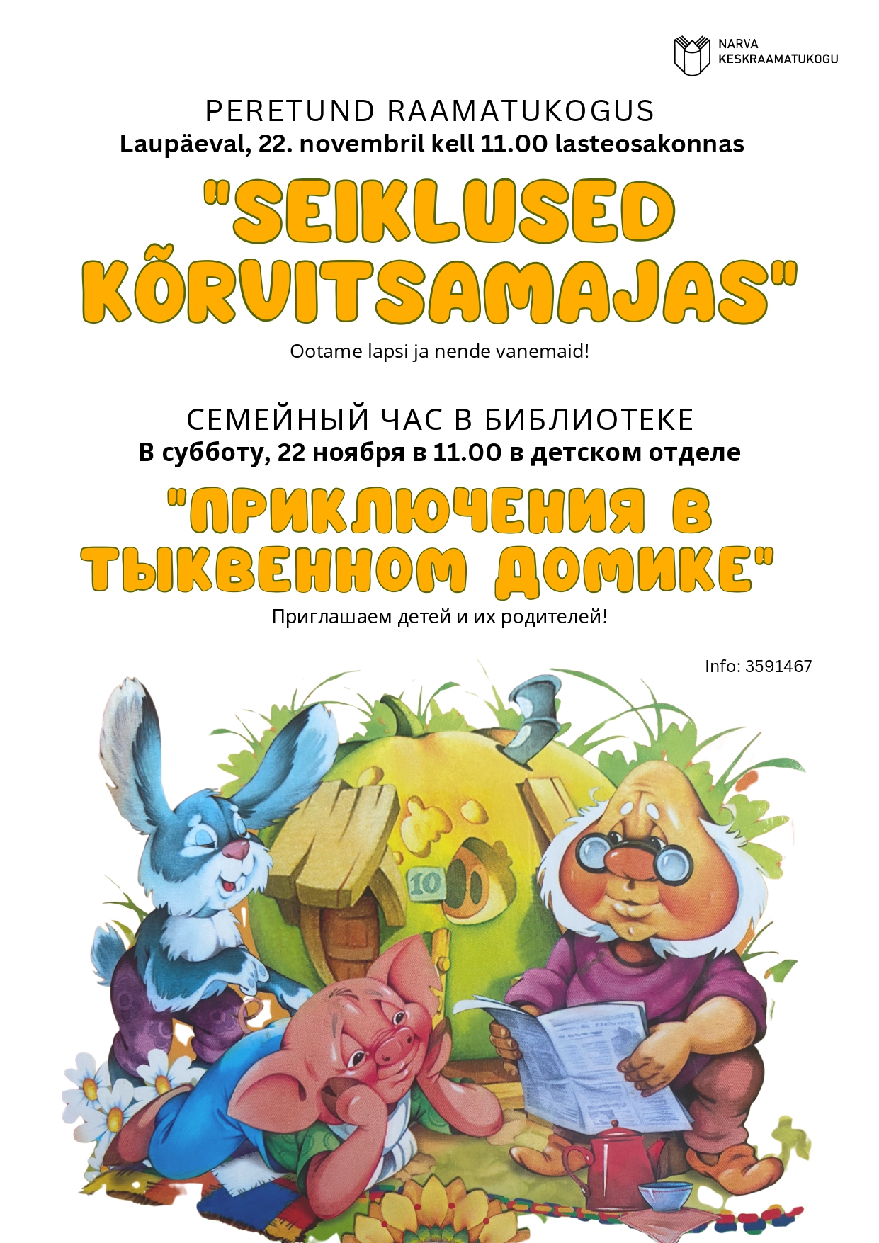 Предварительная регистрация по тел. 3591467 или в Нарвской центральной библиотеке (к. 39).