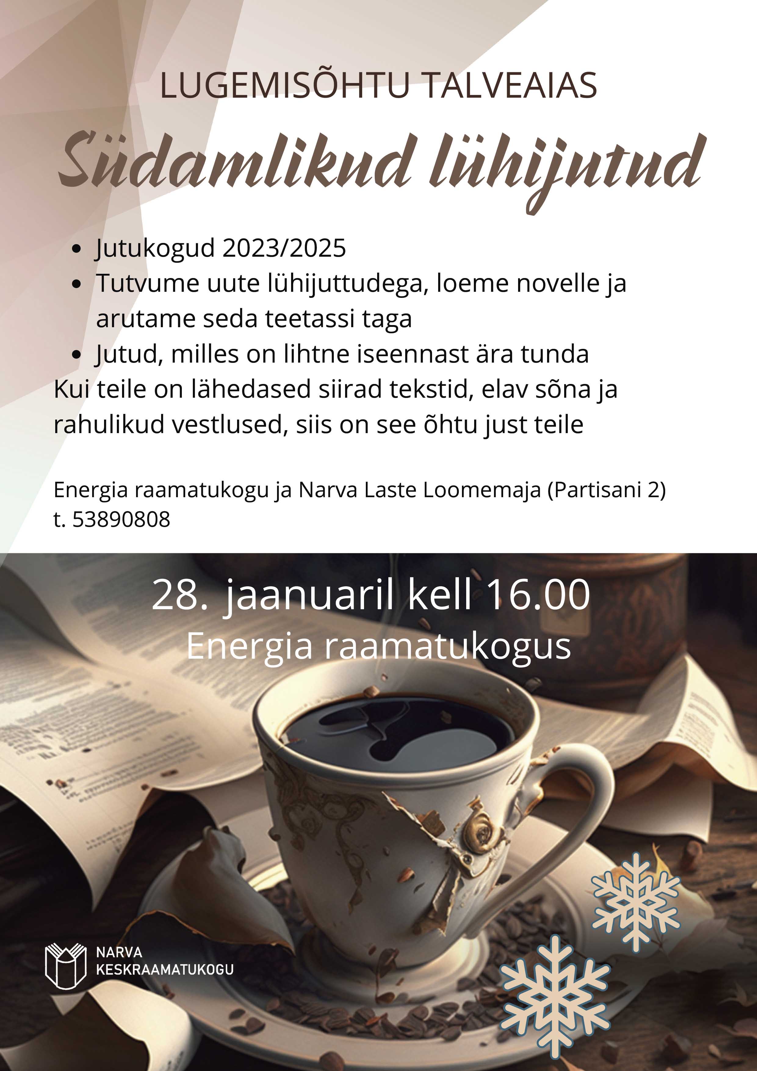 Kutsume sind lugemisõhtule, kus tutvume uute lühijuttude ja novellidega,