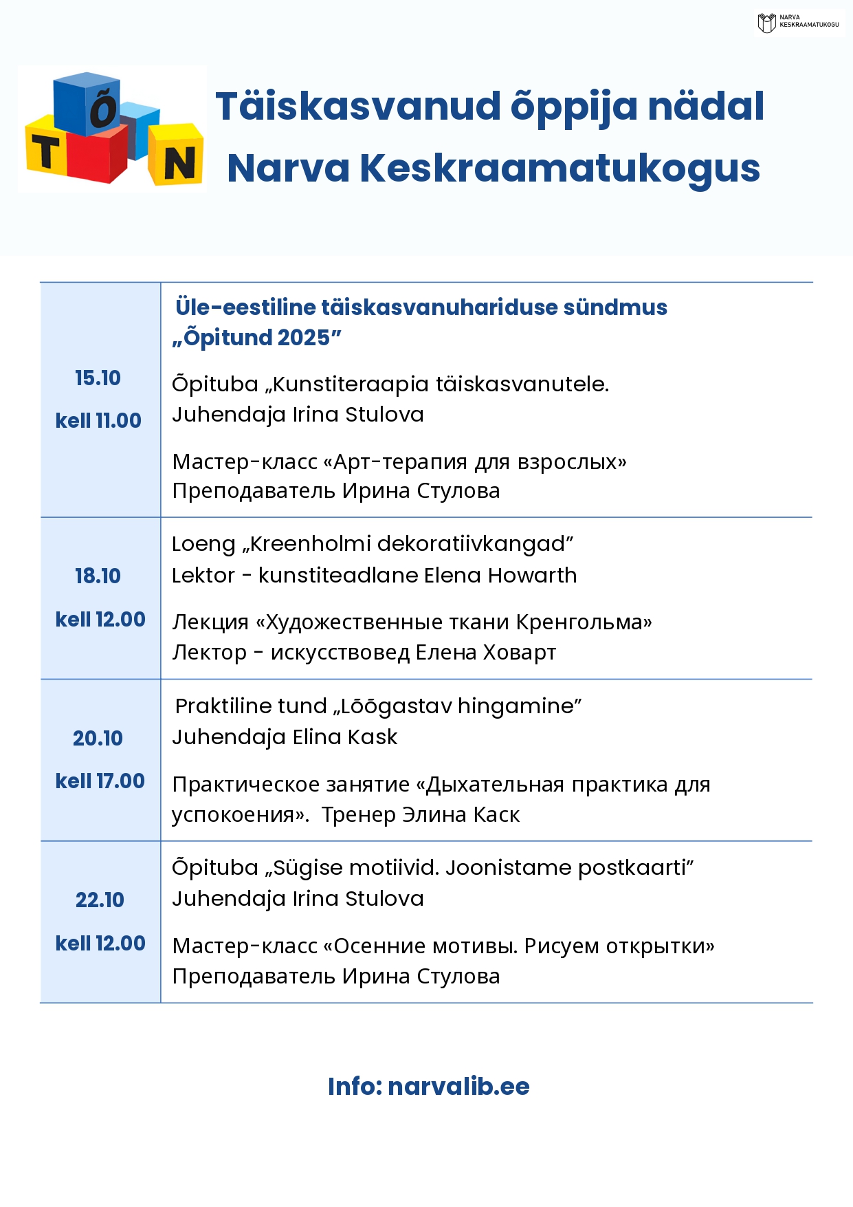 Laupäeval, 22. veebruaril kl 12.00, Narva Keskraamatukogus (Malmi 8).