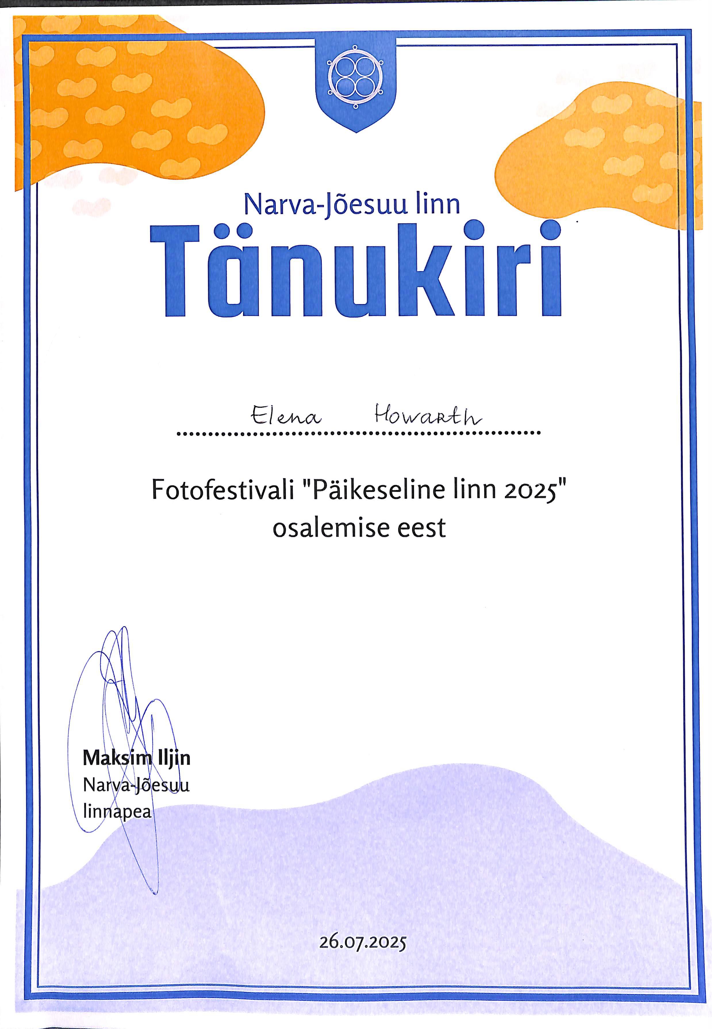 Fotofestivali „Päikeseline linn 2025“ osalemise eest (Maksim Iljin, Narva-Jõesuu linnapea, 26.07.2025)