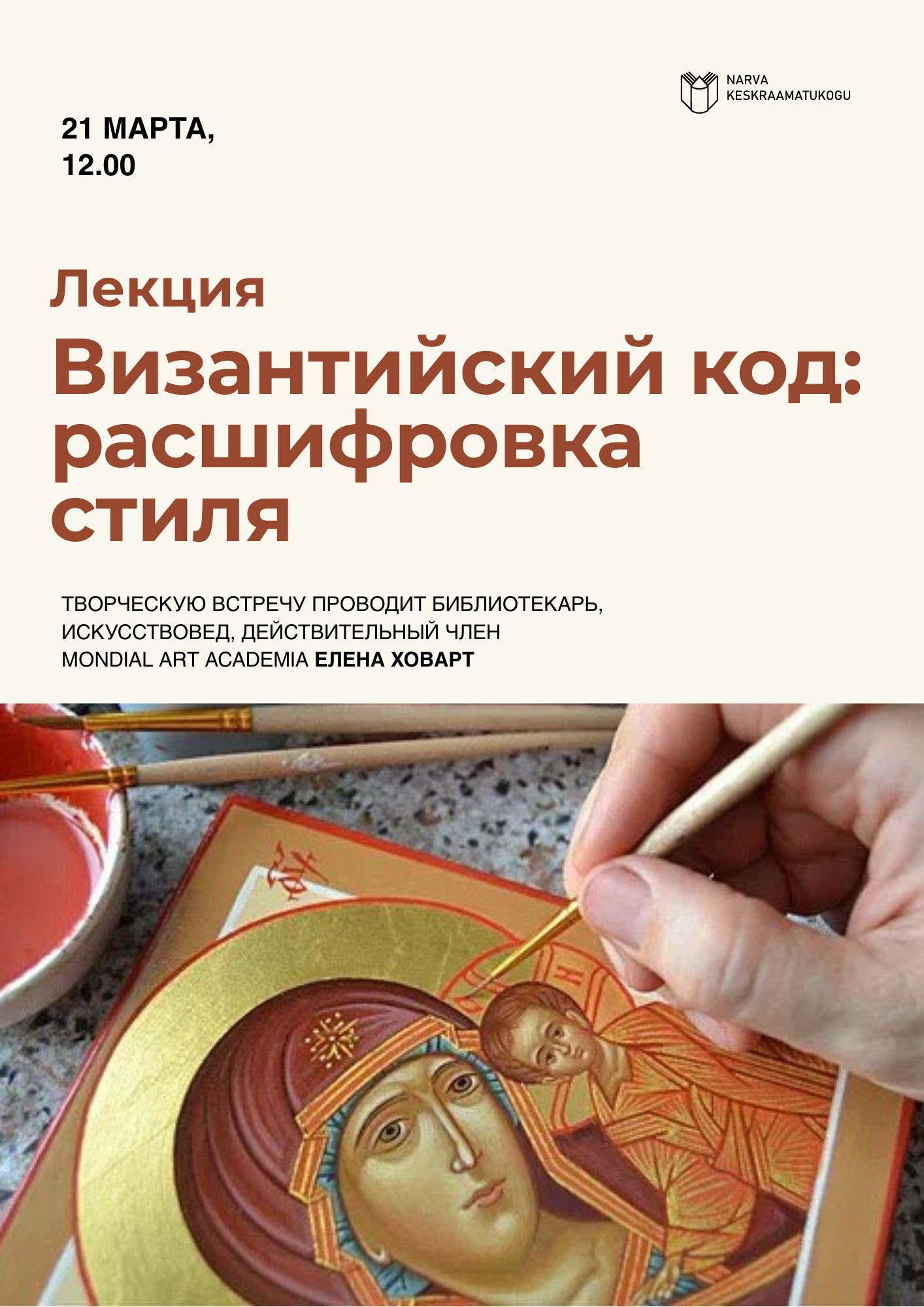 21 марта, в субботу, в 12.00, в Нарвской центральной библиотеке состоится публичная лекция «Византийский код: расшифровка стиля»