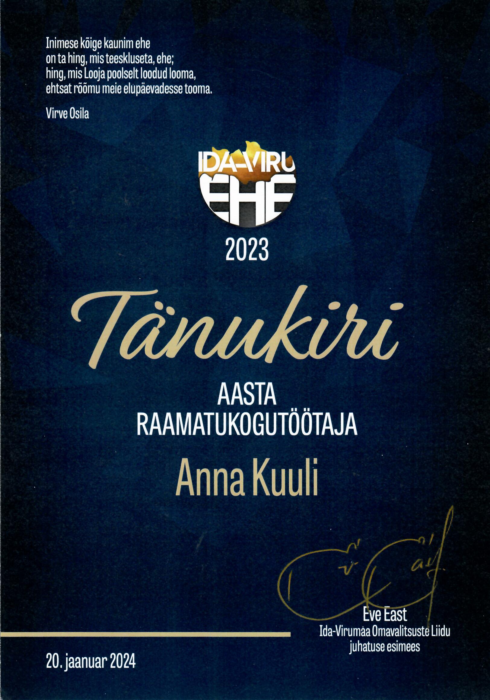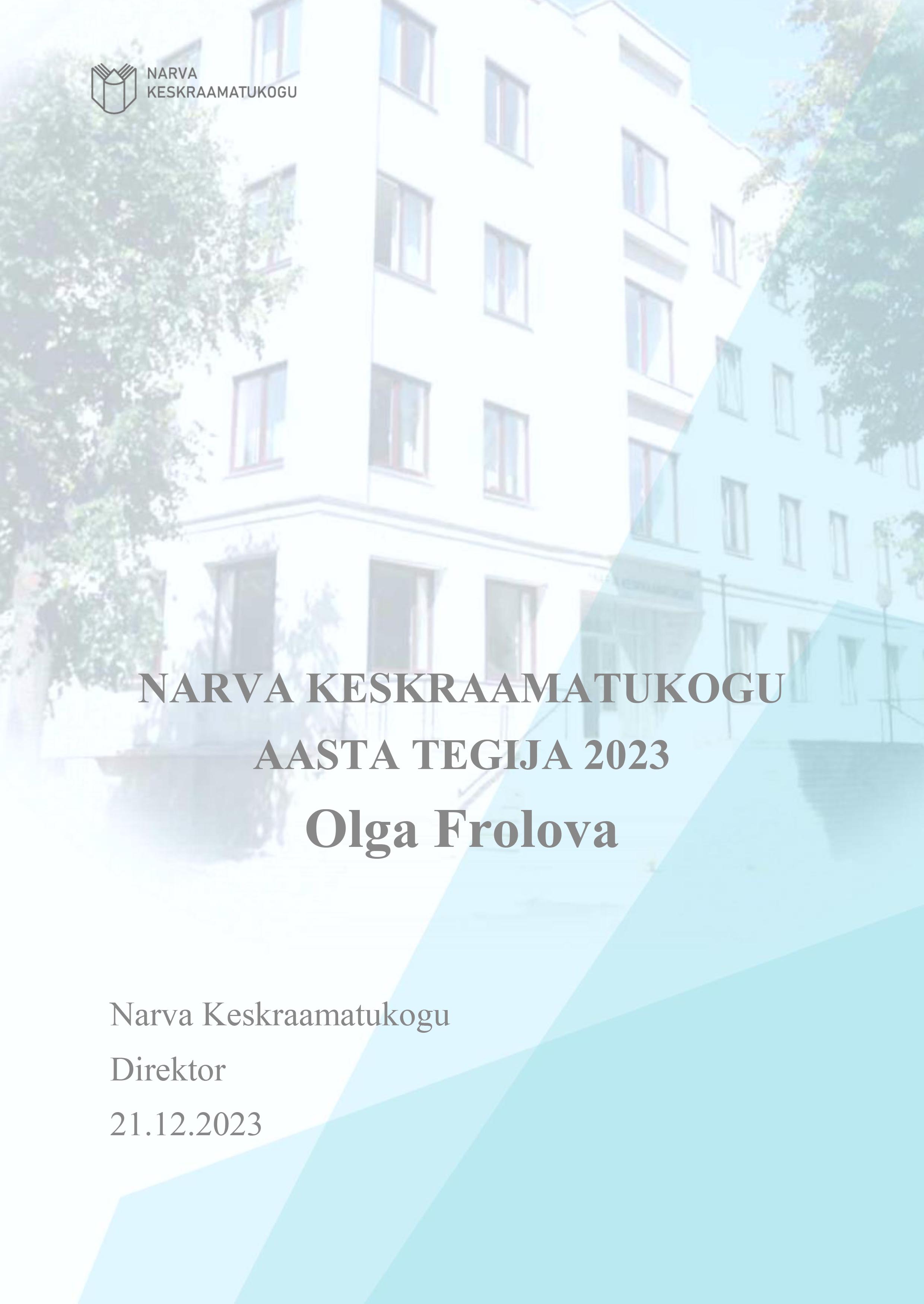 Narva Keskraamatukogu Aasta Tegija 2023 (Narva Keskraamatukogu direktor, 21.12.2023) |