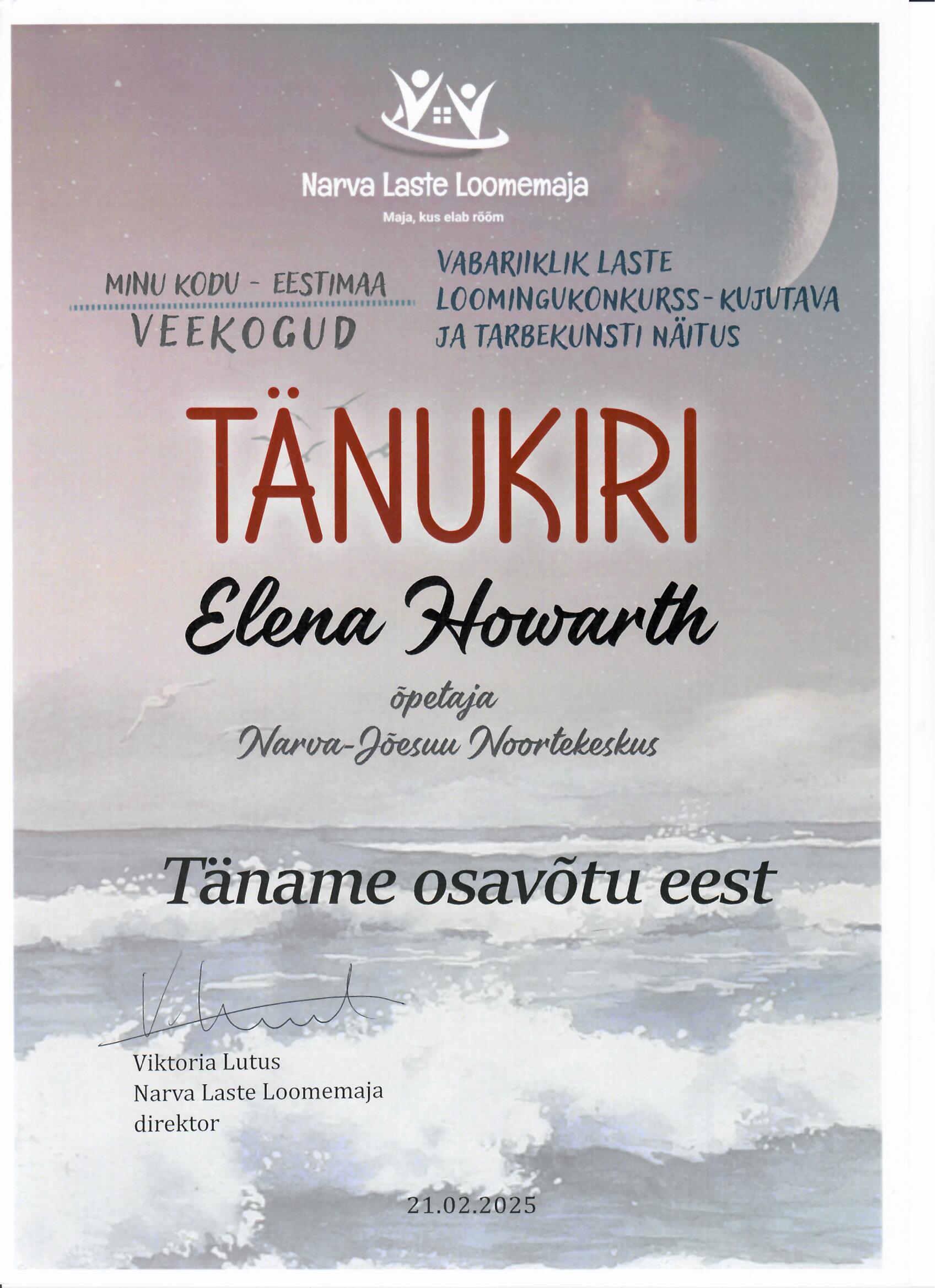 Vabariiklik laste loomingukonkurss-kujutava ja tarbekunsti näitus „Minu kodu – Eestimaa. Veekogud“ (Viktoria Lutus, Narva Laste Loomemaja direktor, 21.02.2025)