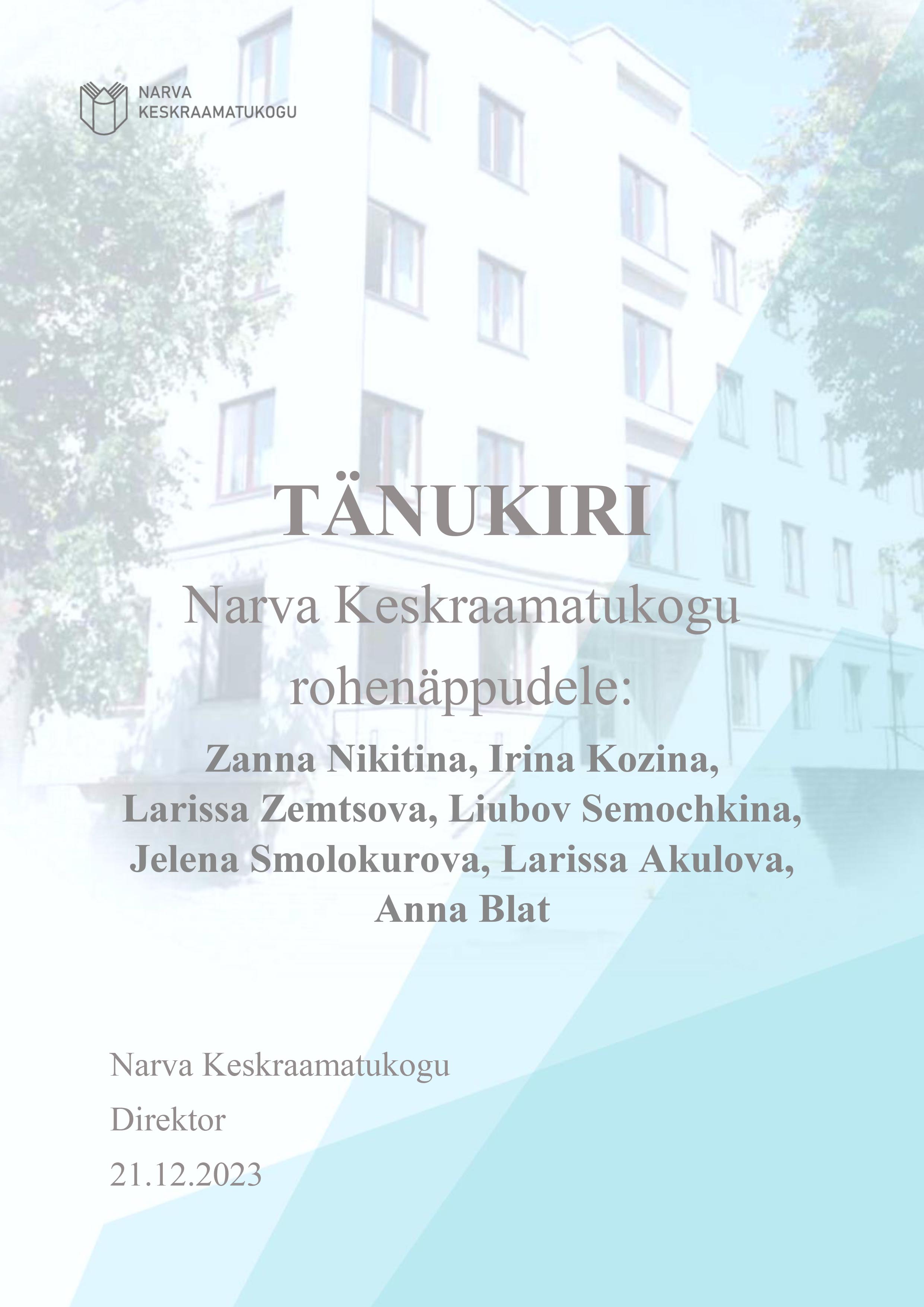 Narva Keskraamatukogu rohenäppudele (Narva Keskraamatukogu direktor, 21.12.2023) |