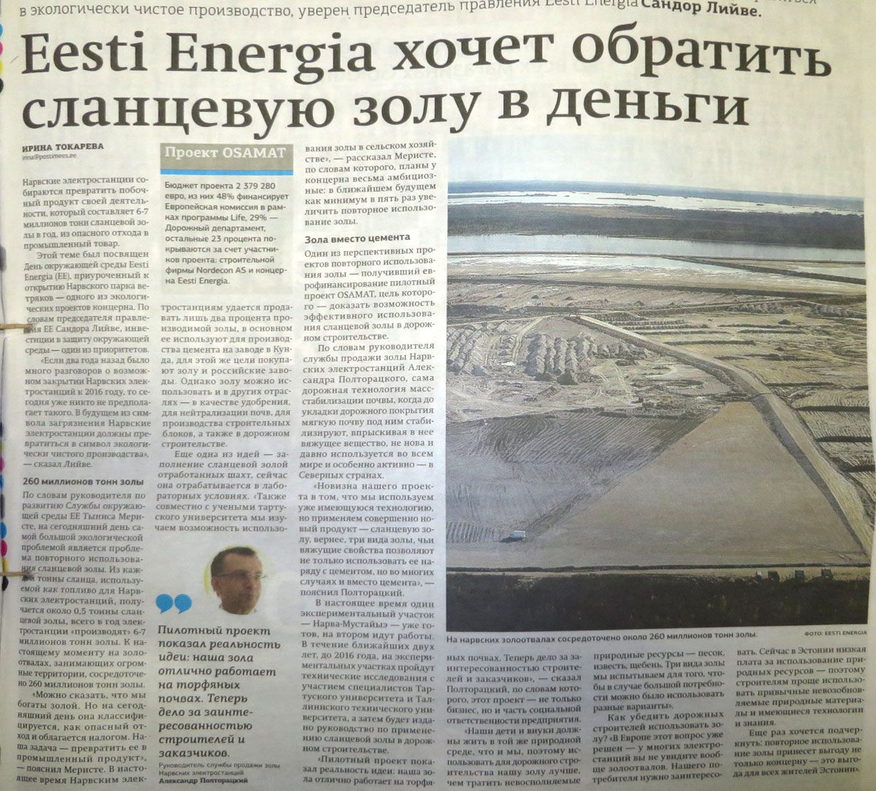 Токарева, И. Eesti Energia хочет обратить сланцевую золу в деньги