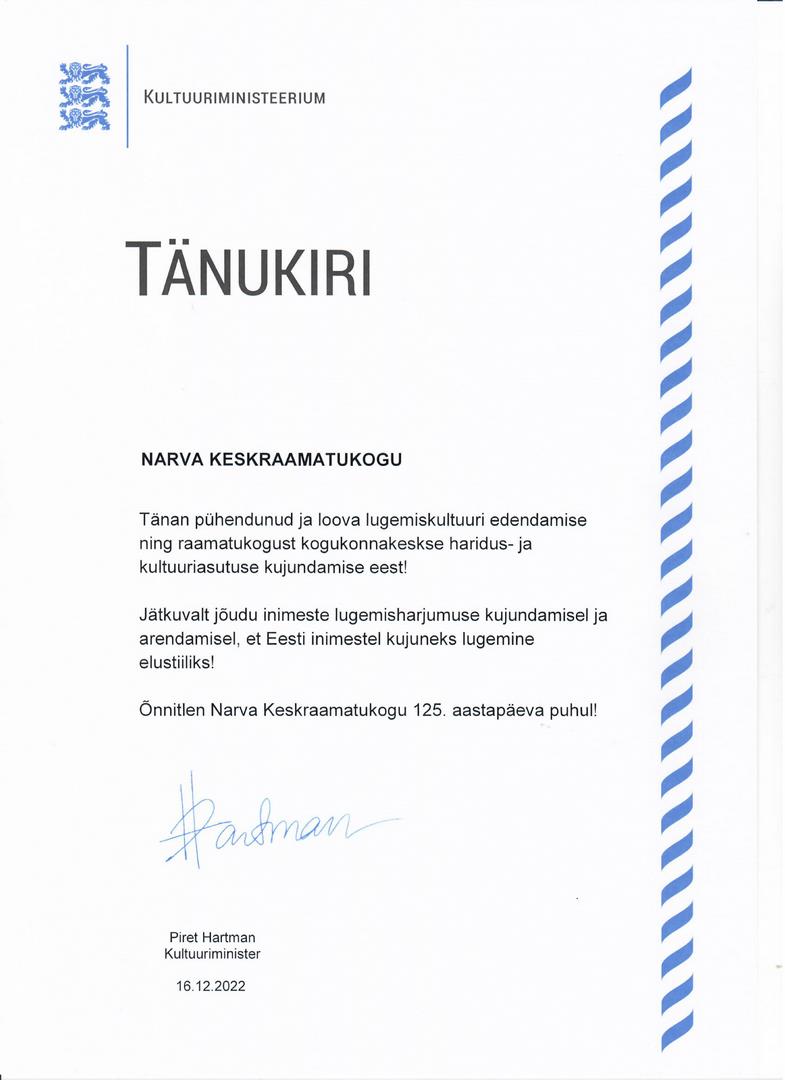 Narva Keskraamatukogu lasteosakonnale, kes andis oma panuse XI nukitsa konkursi õnnestumisse.