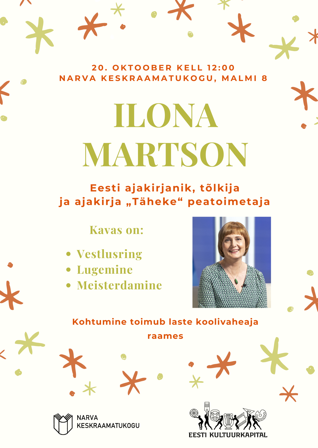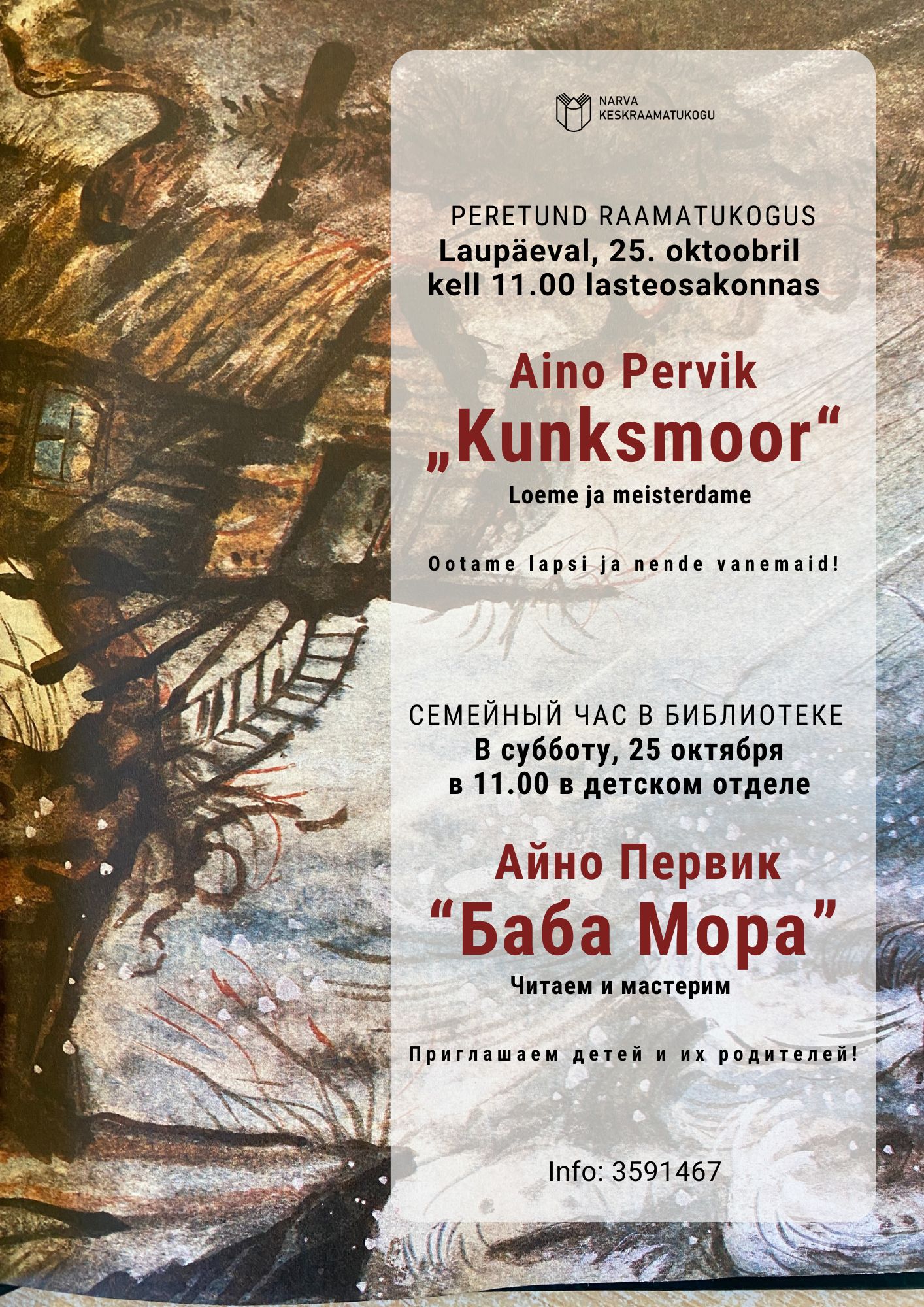 Предварительная регистрация по тел. 3591467 или в Нарвской центральной библиотеке (к. 39).