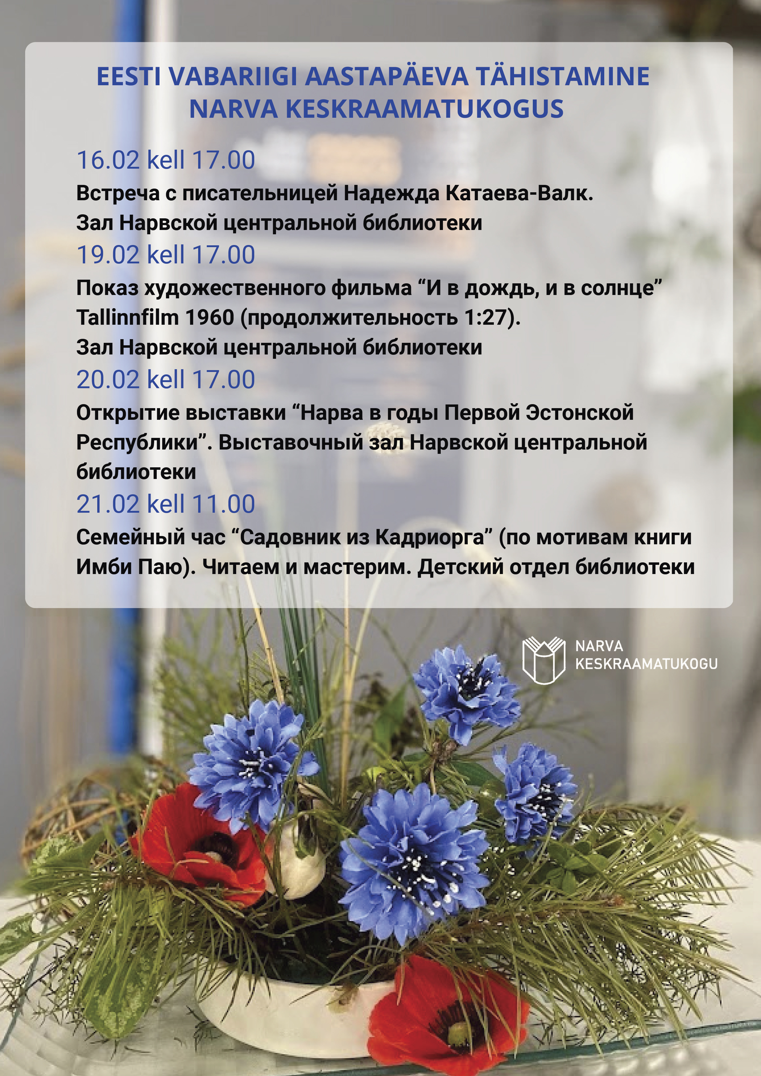 Narva Keskraamatukogu üritused, mis pühendatud Eesti Vabariigi aastapäevale