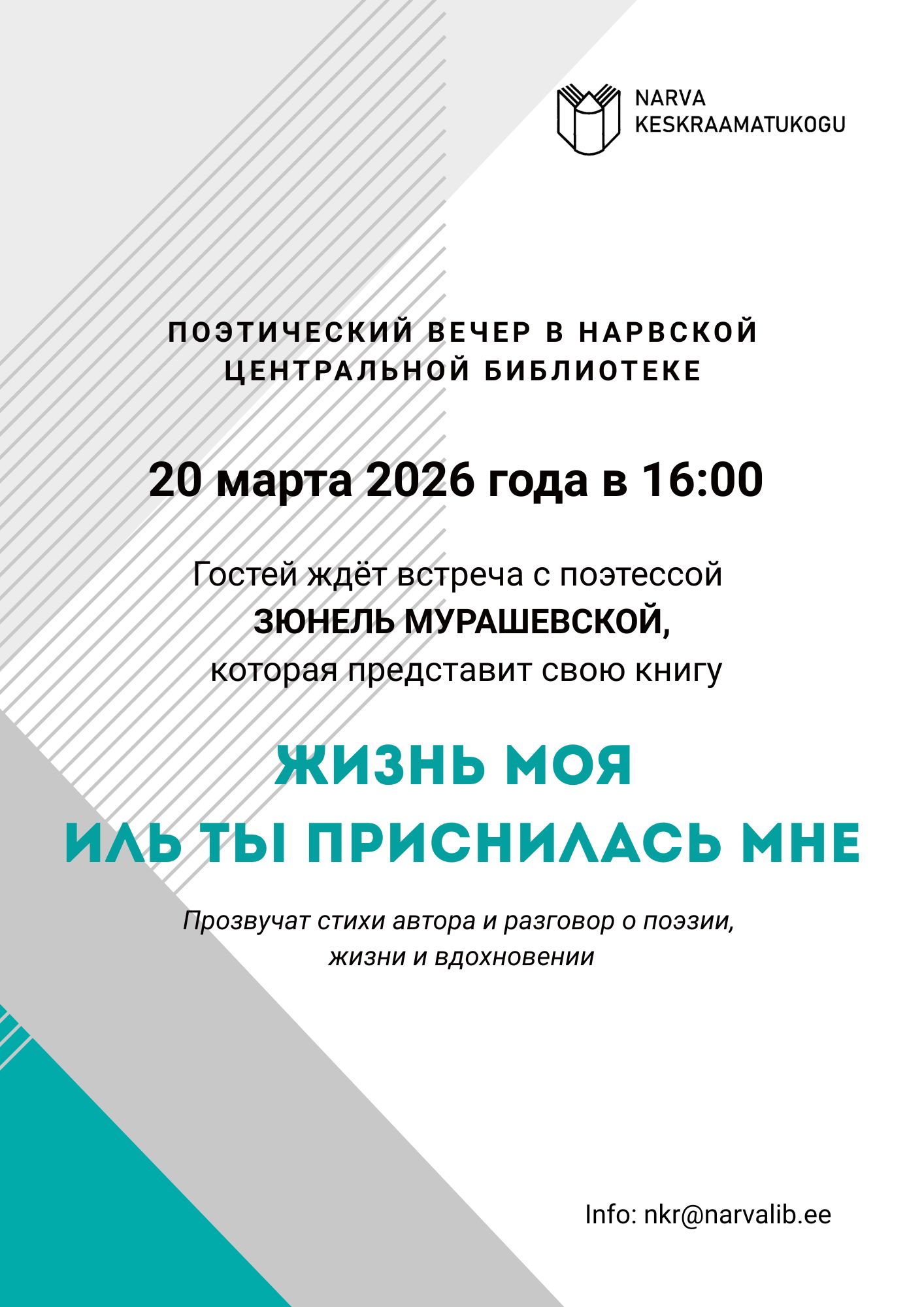 20 марта 2026 года в 16:00 в Нарвской центральной библиотеке